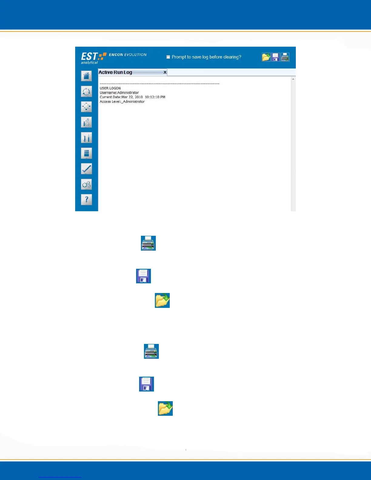 Saving the Run Log – <click> the Save icon. The Error Log can be saved.