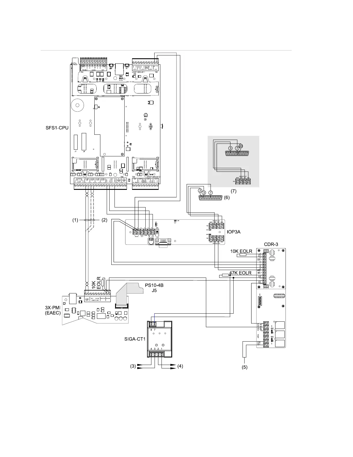 Figure 40: Combined CDR-3 and IOP3A wiring for a PT-1S printer application