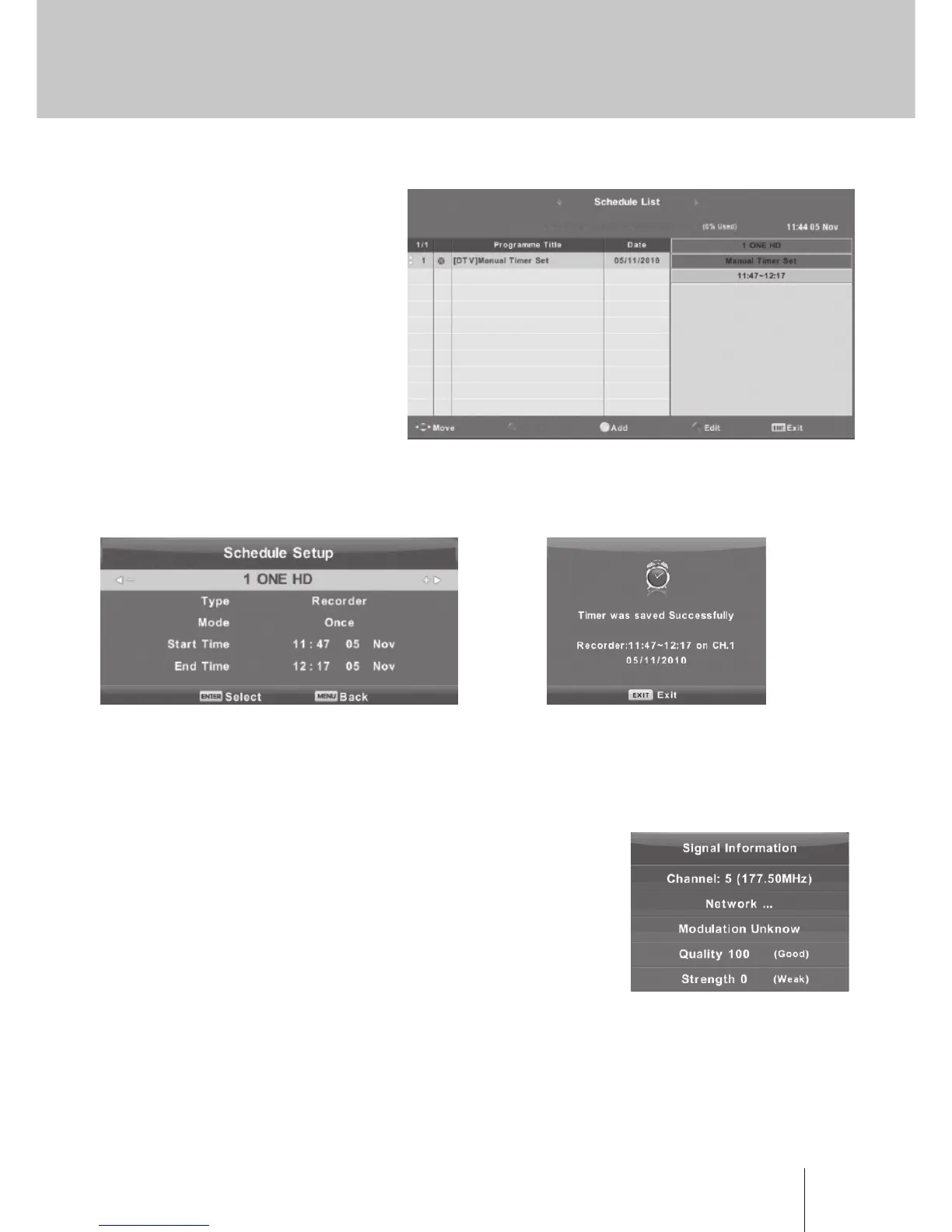 about the signal. Only available when there is signal in DTV.