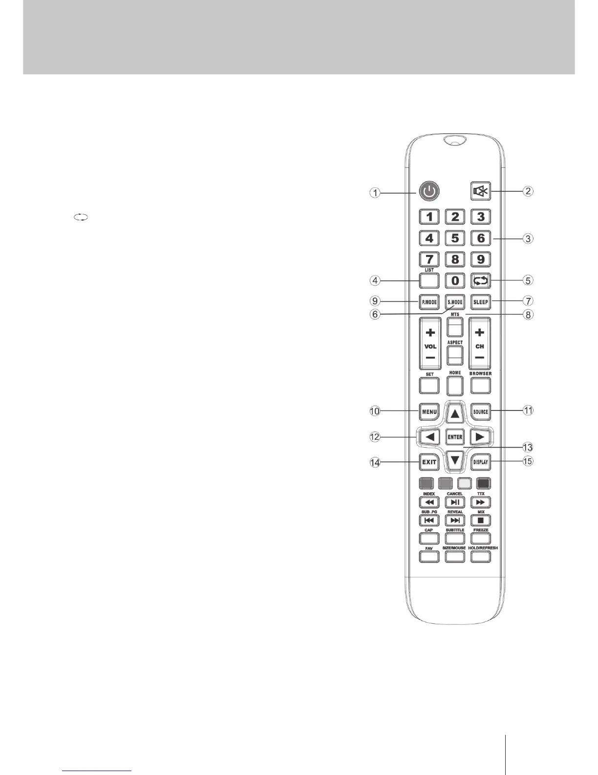3. 0-9: pritisnite 0~9 za izbor TV kanala.