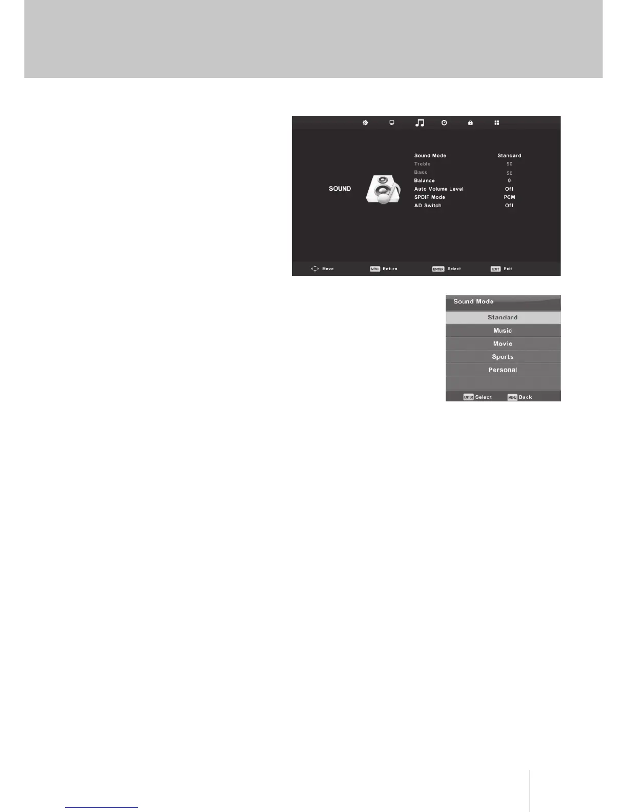 Press ▼ / ▲ button to select Sound Mode, then press Enter button to enter