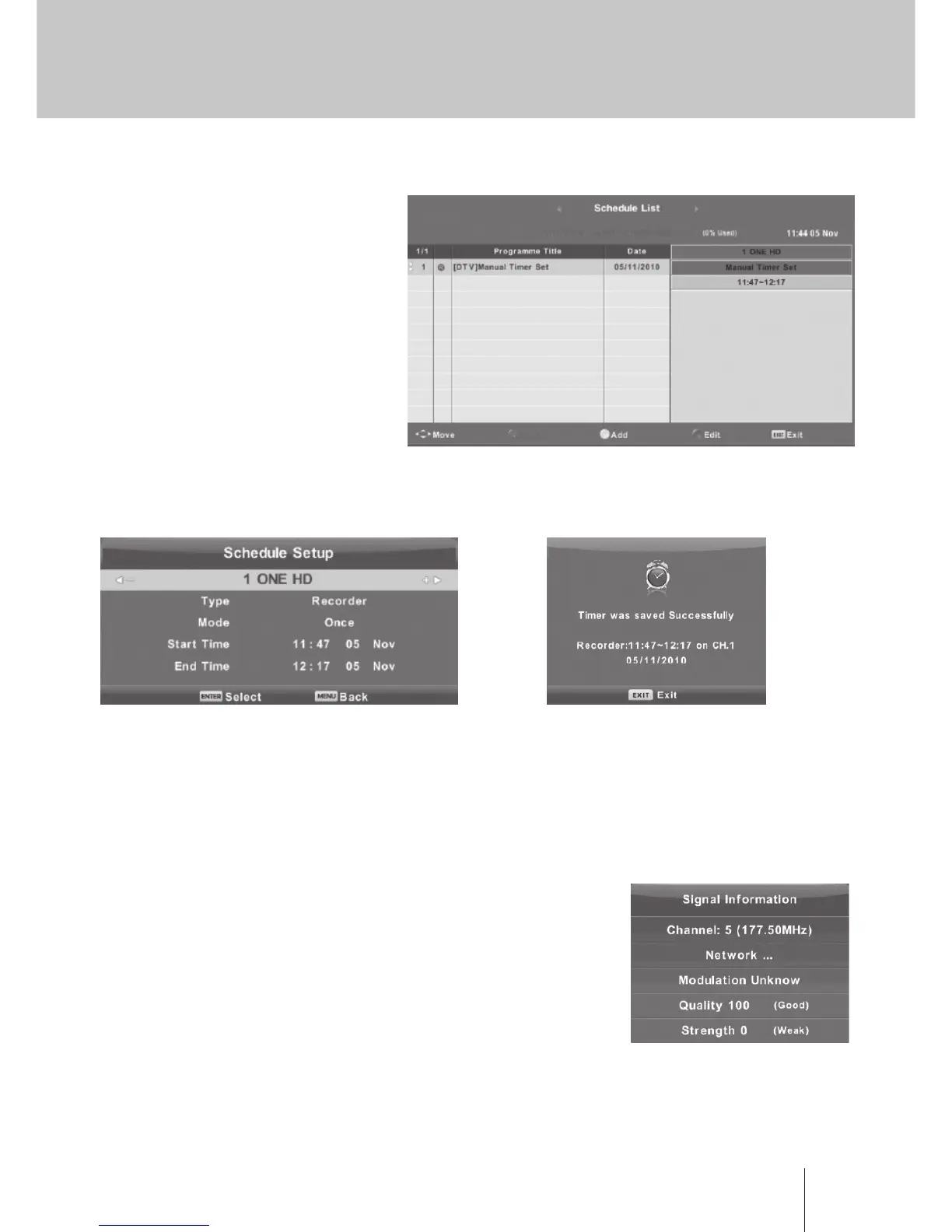 სტრიქონი Signal Information -ის (ინფორმაცია არხის სიგნალის შესახებ) ასარჩევად დააჭირეთ