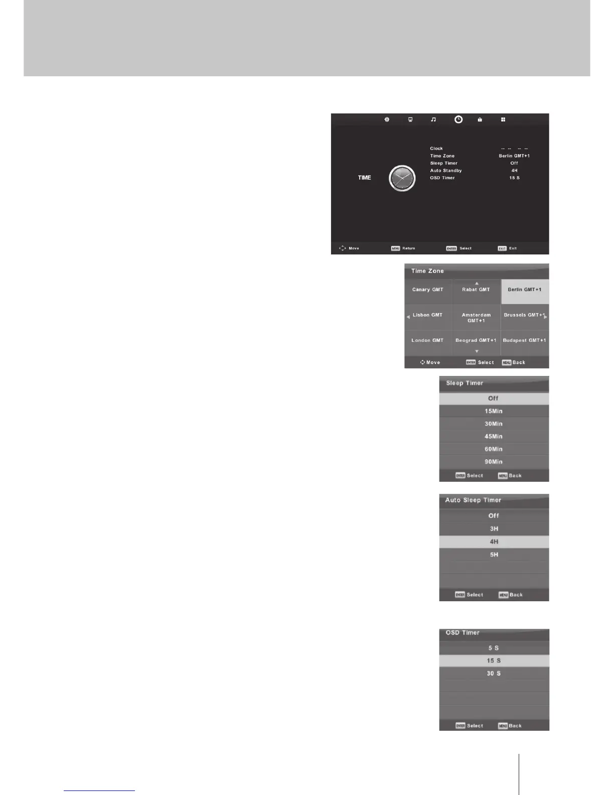 Press ▼ / ▲ button to select Time Zone, then press Enter button to