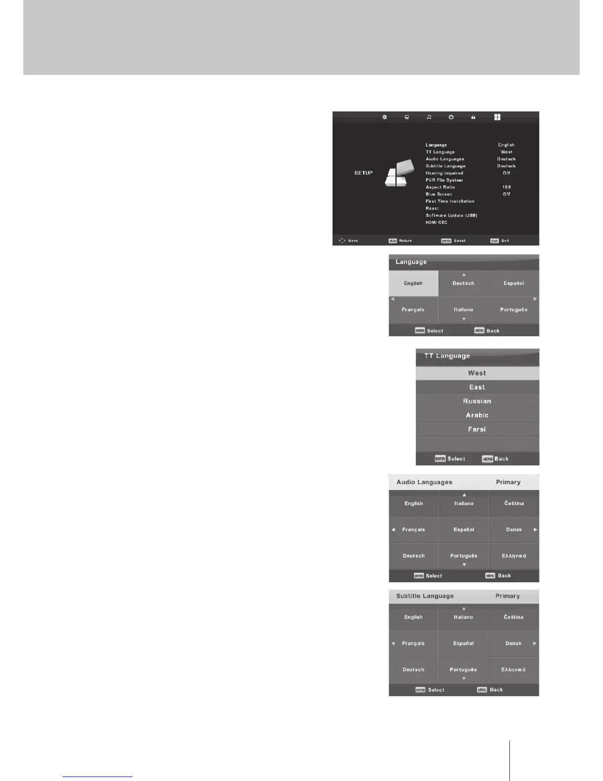 სტრიქონი Audio Languages -ის ასარჩევად დააჭირეთ