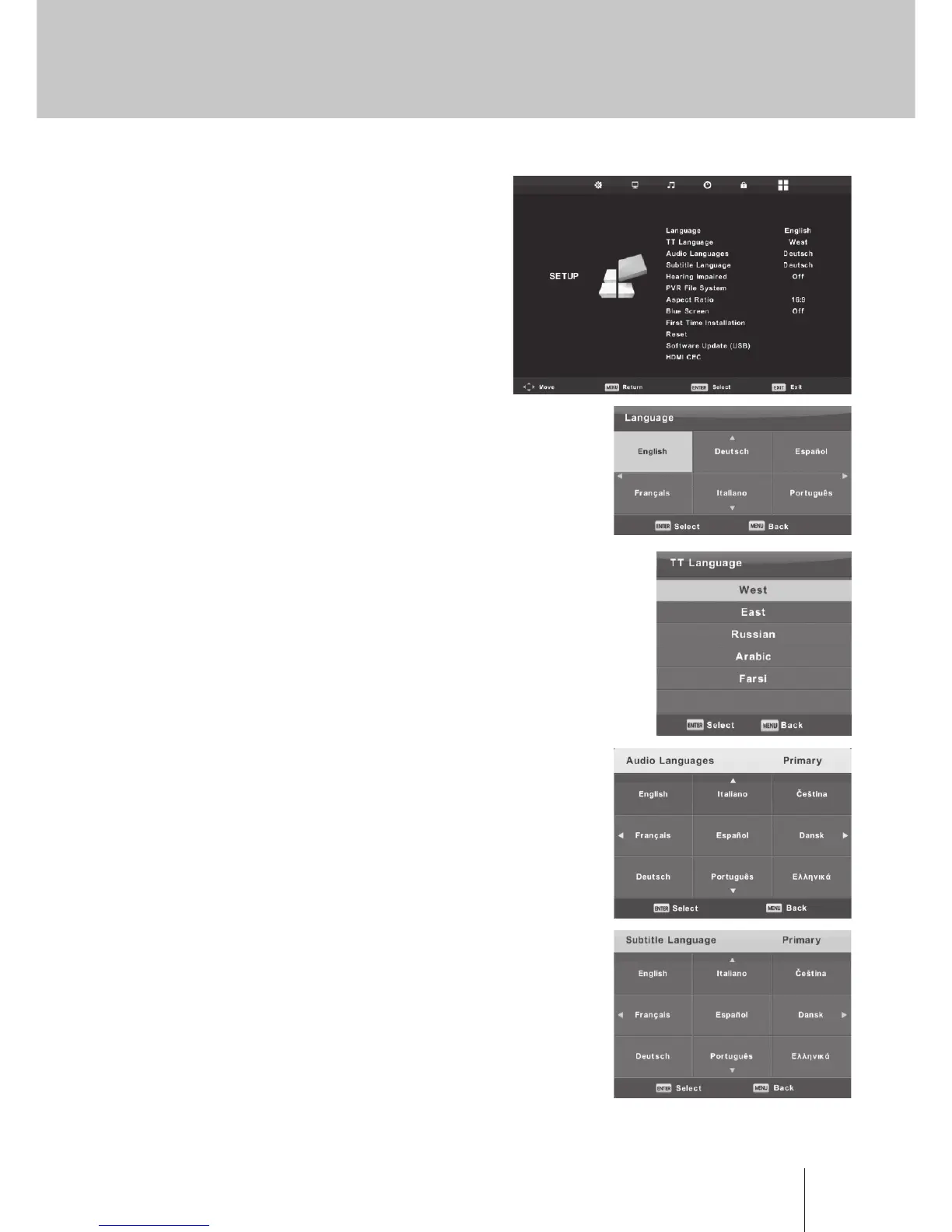 Press ▼ / ▲ button to select Audio Languages, then press Enter