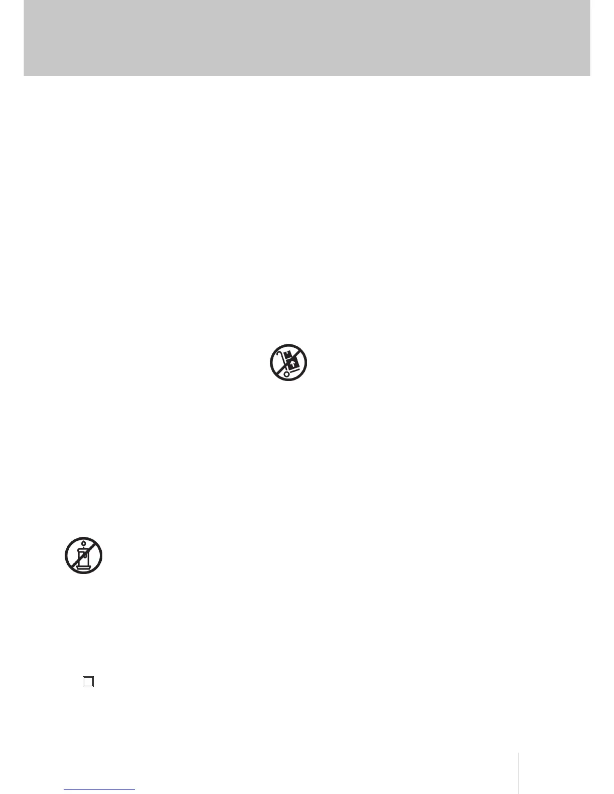 20. Do not place any sources of danger on the apparatus (e.g. liquid lled objects, lighted candles).