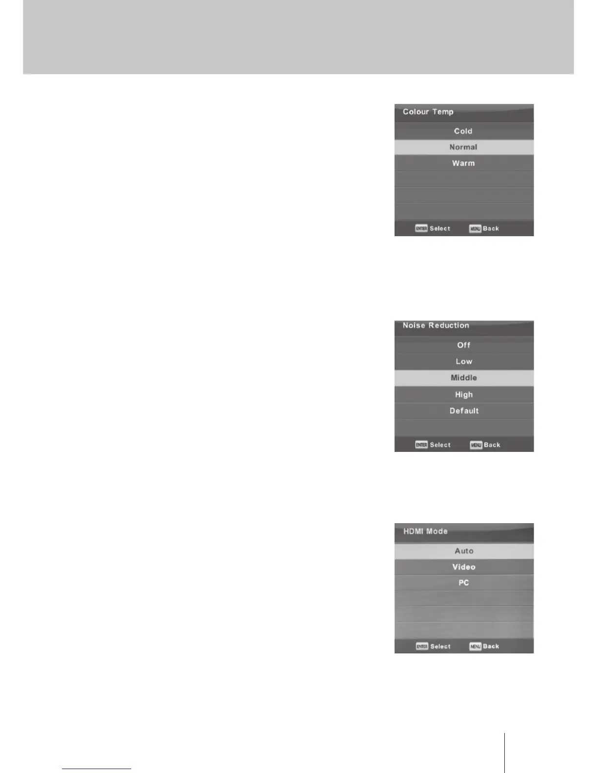 Premere il pulsante ▼ / ▲ per selezionare l’impostazione Color