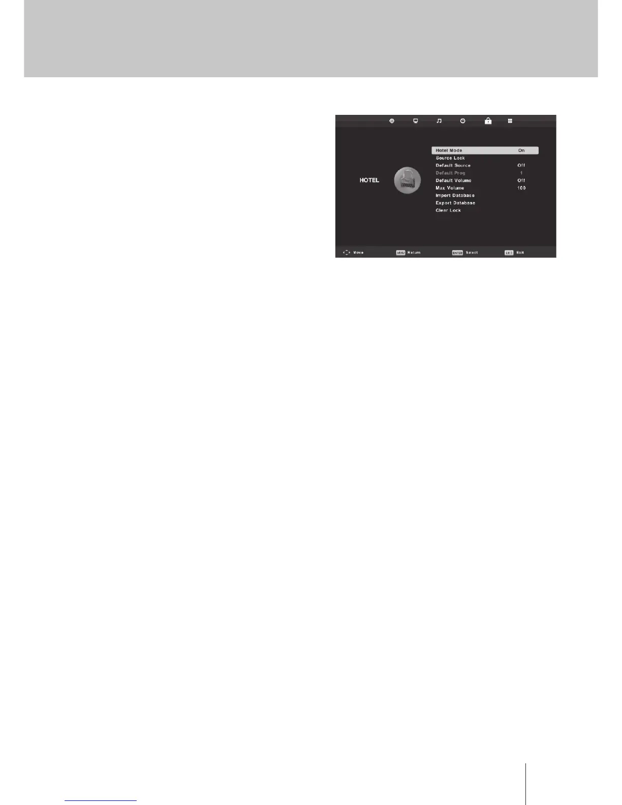 Premere il pulsante ▼ / ▲ per selezionare la riga Hotel Mode, poi premere il tasto ◄ / ► per regolare.