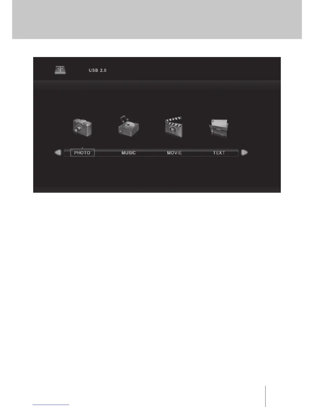 Nota: Prima di iniziare a lavorare con il menu Media, inserire il dispositivo USB, poi premere il pulsante