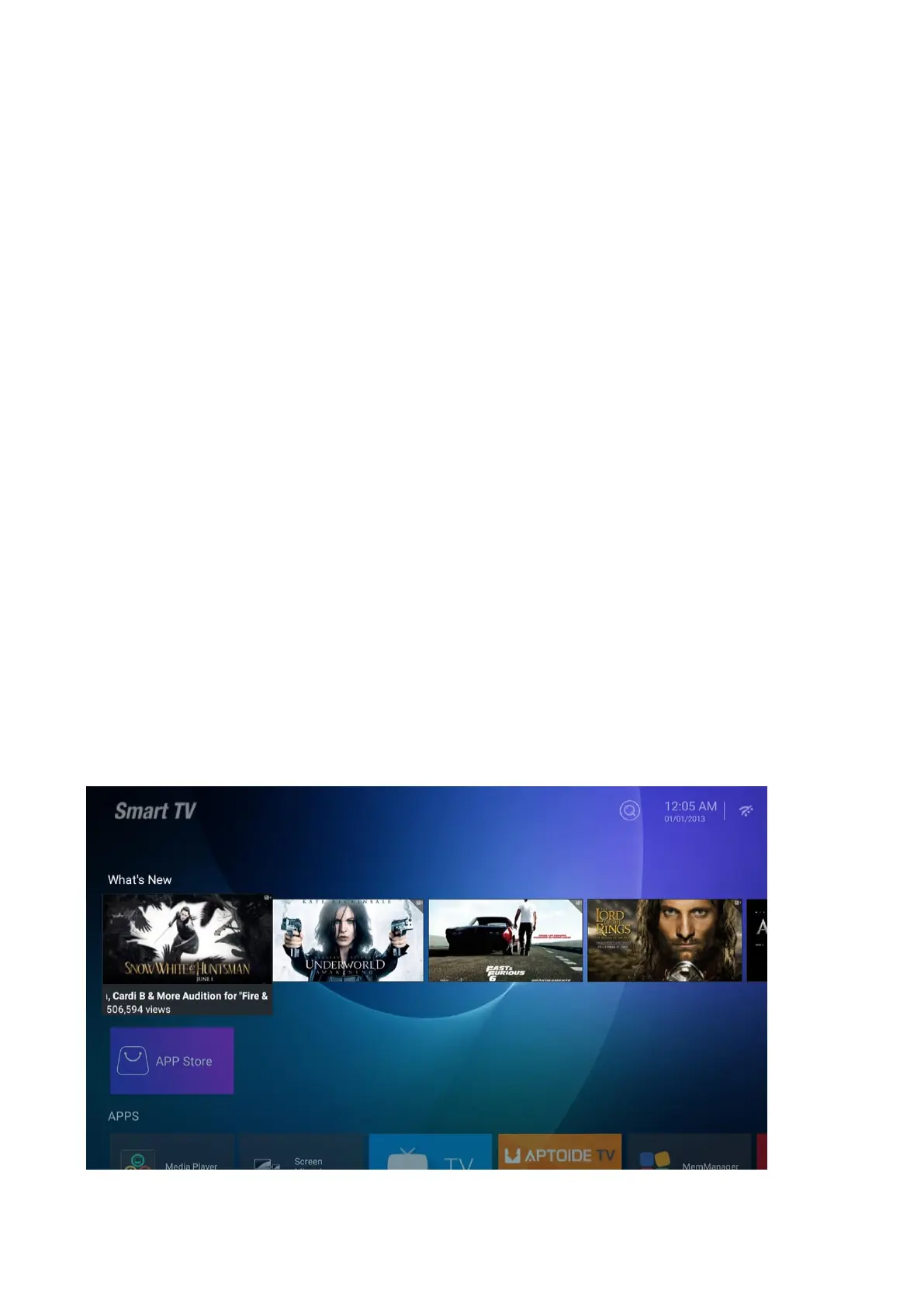The main page uses Zeasn UI design and is divided into: WHAT'S NEWS, APPS, MUSIC, APORTS