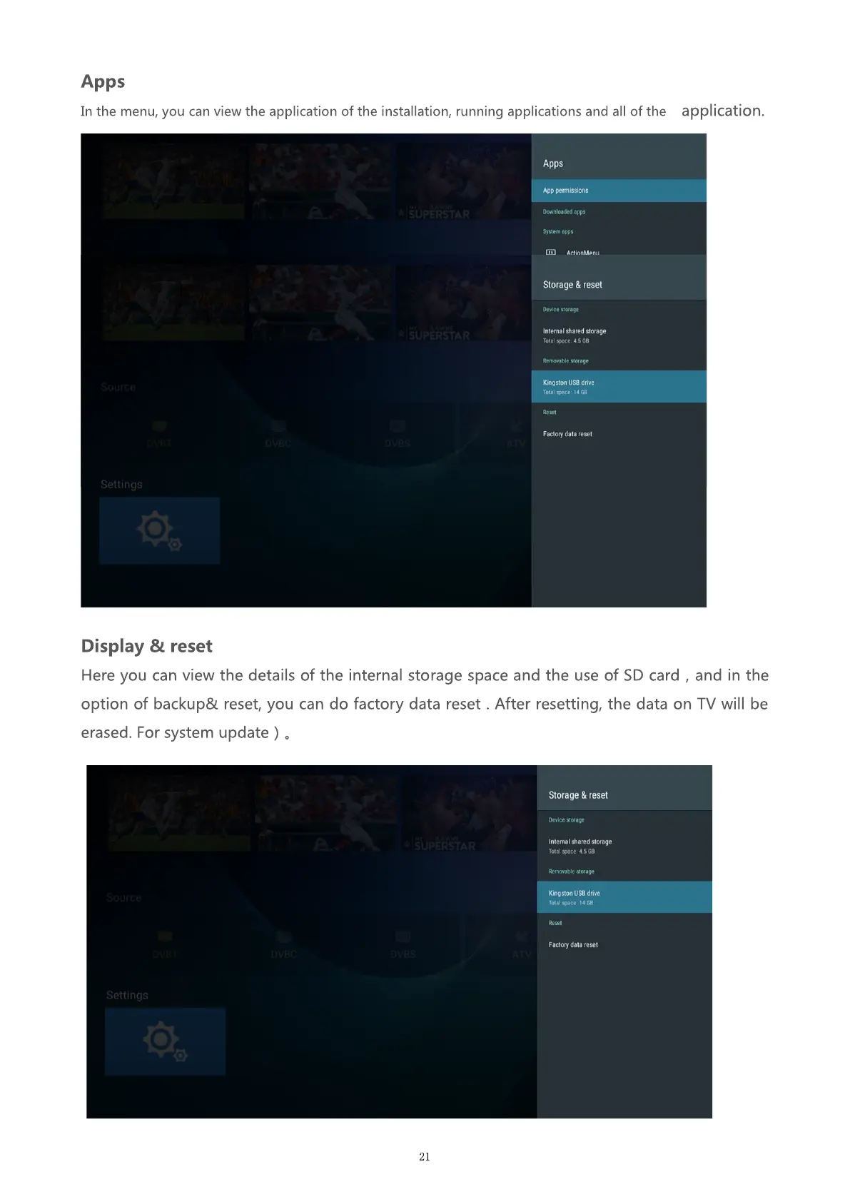 Estar LEDTV40D5T2 - App Management; Storage and Reset