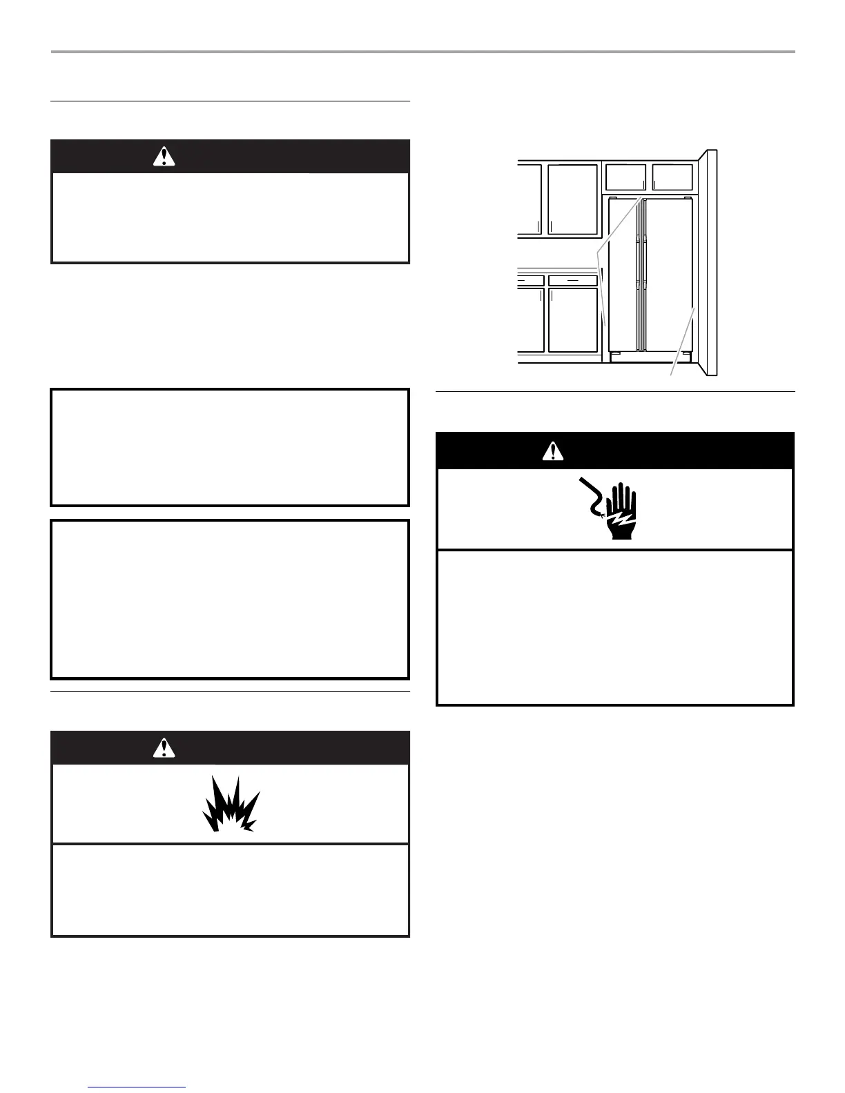 refrigerator next to a fixed wall, leave 2" (5.08 cm) minimum on