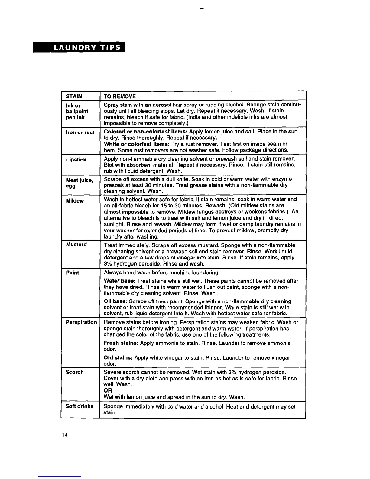 sunlight. Rinse and rewash. Mildew may form if wet or damp laundry remains in