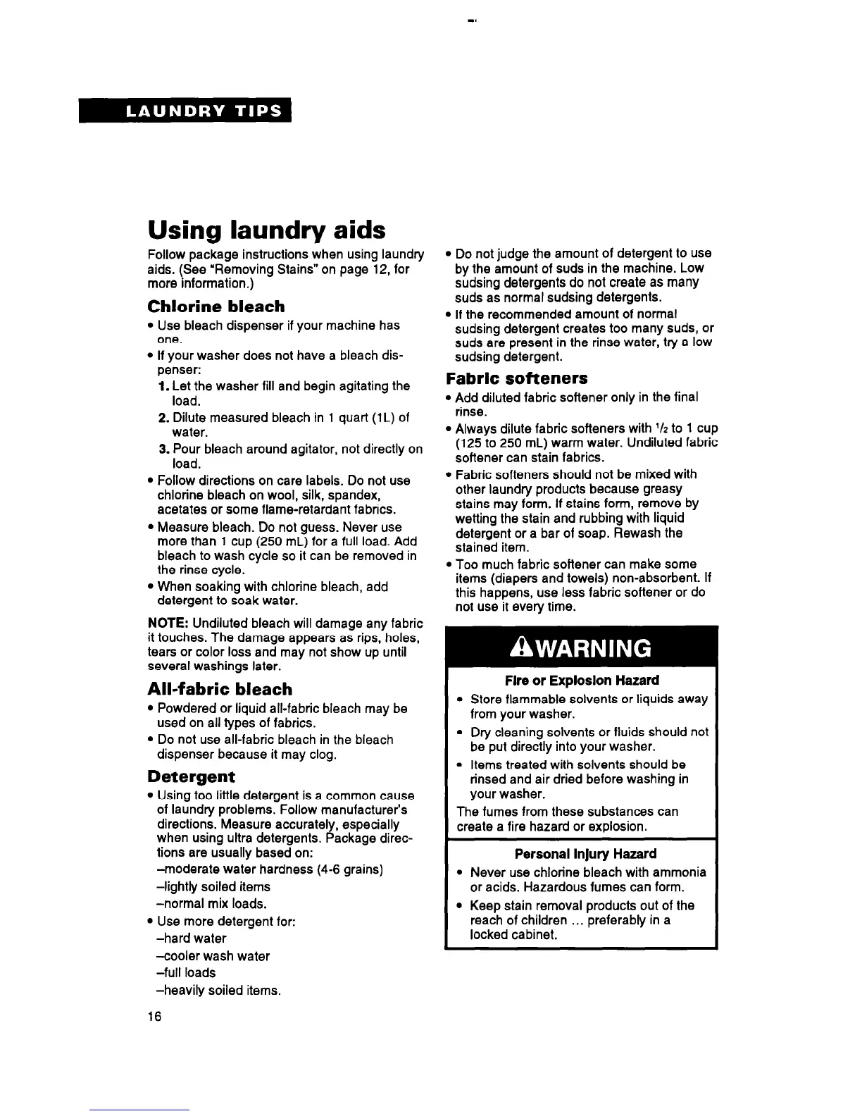 of laundry problems. Follow manufacturer’s
