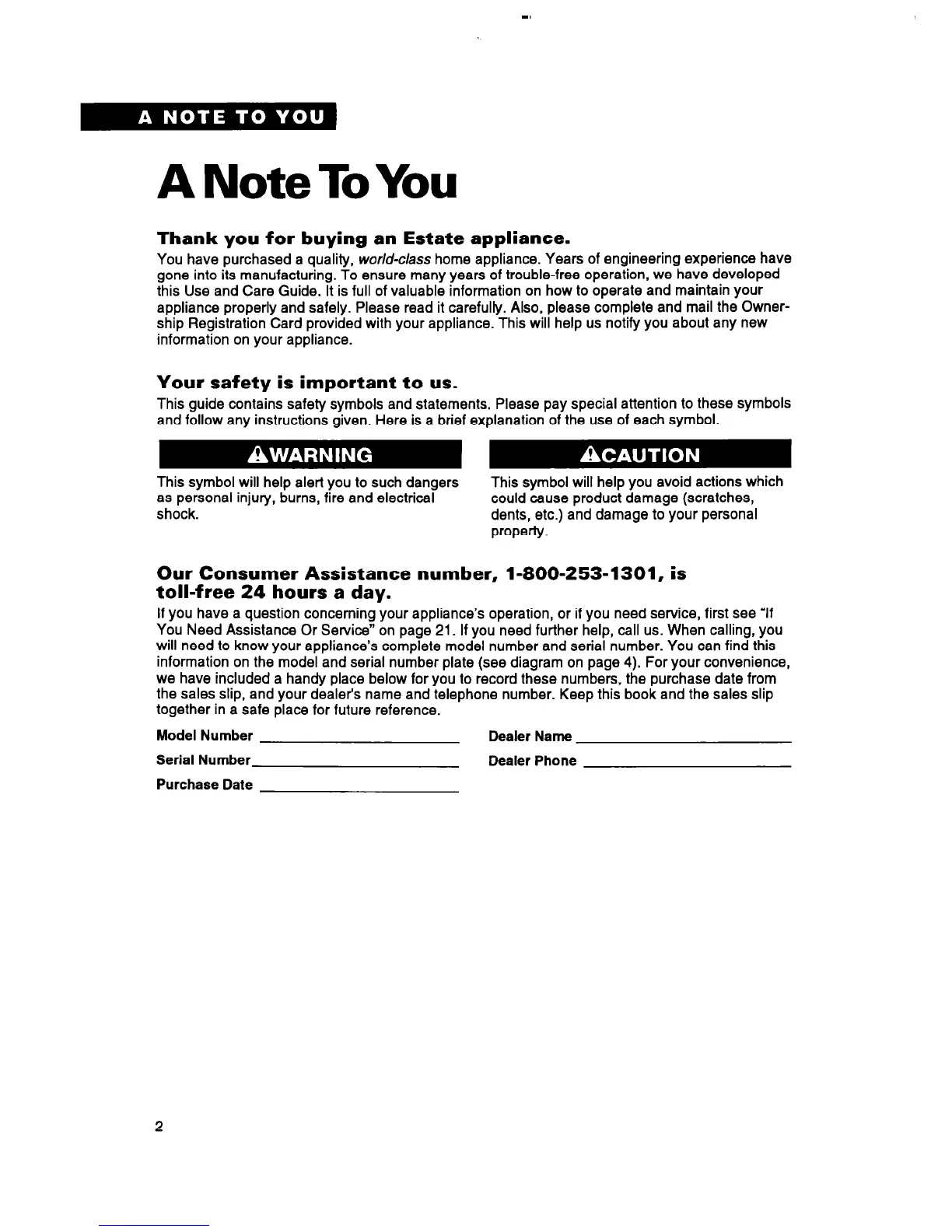 this Use and Care Guide. It is full of valuable information on how to operate and maintain your