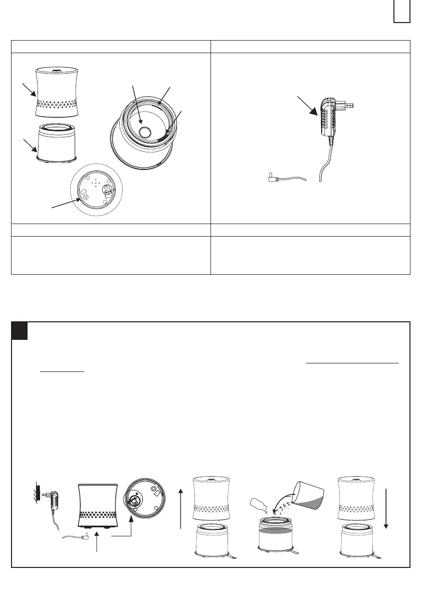nivel máximo de 100ml. (Atención: el difusor no funciona si el nivel de agua es insuciente o superior a 100ml).