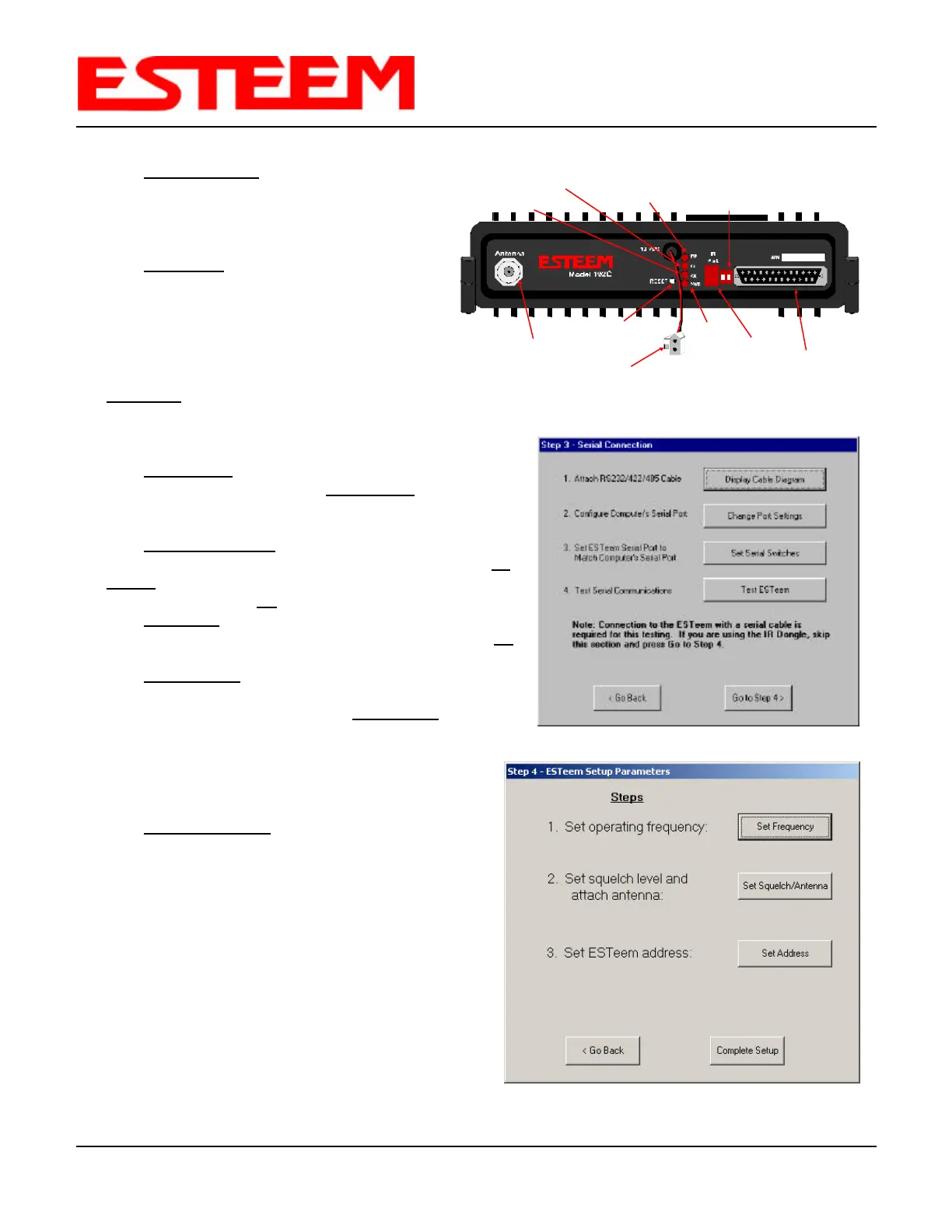 9. Press Test ESTeem button. If the ESTeem serial