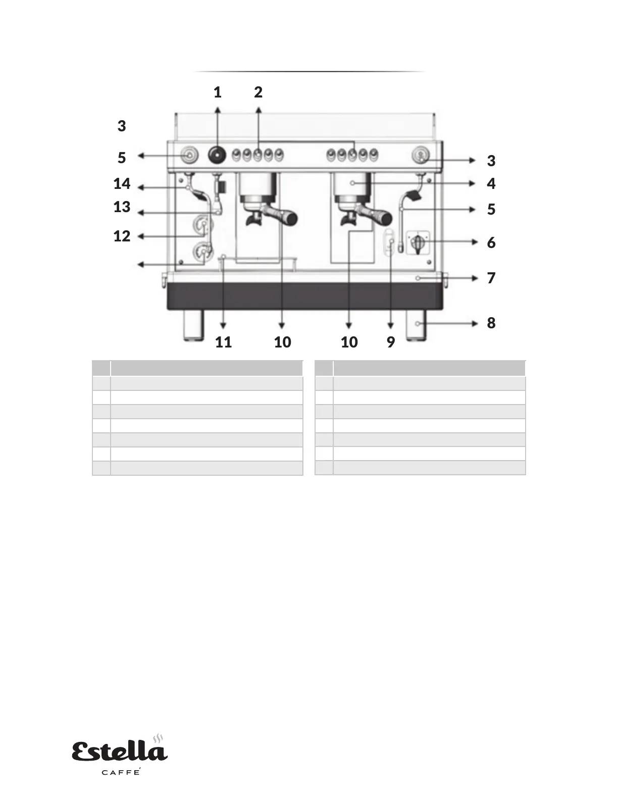 Estella 236ECEM1 - Parts Diagram and Identification; Espresso Machine Component Layout