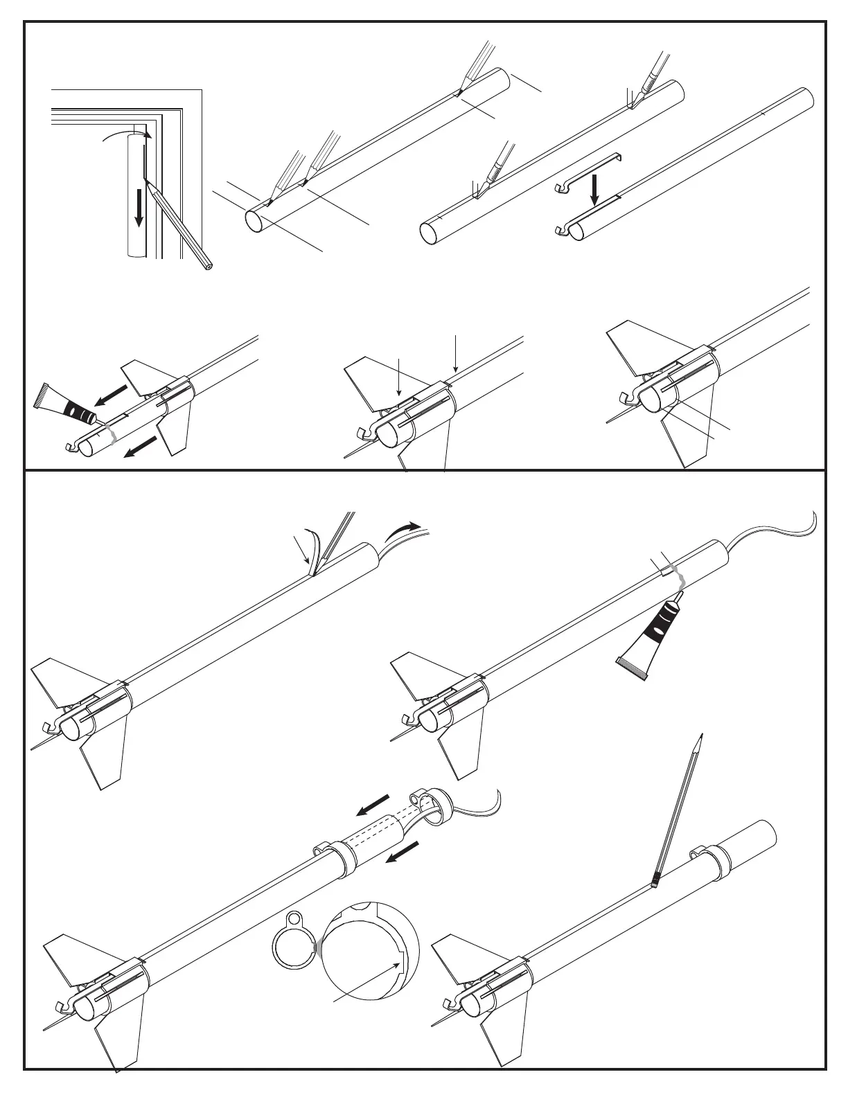 ATTACH SHOCK CORD & LAUNCH LUG / PEGAR LA CUERDA DE TENSIÓN & LA AGARRADERA DE LANZAMIENTO /