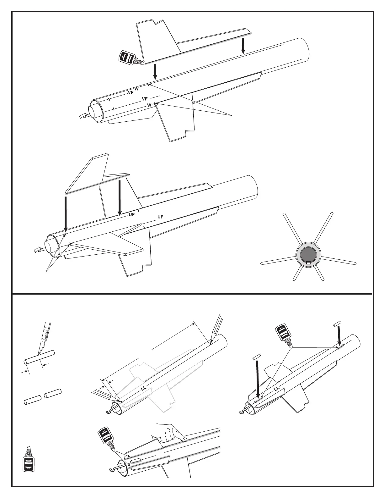 ATTACH LAUNCH LUGS / PEGAR LAS AGARRADERAS DE LANZAMIENTO / FIXER LES COSSES DE LANCEMENT