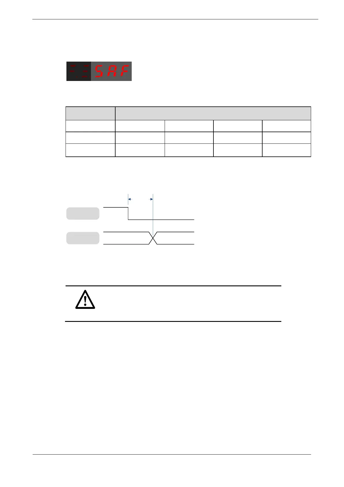 When the STO function takes effect, the Drive enters the safe state and the Panel Operator displays SAF,