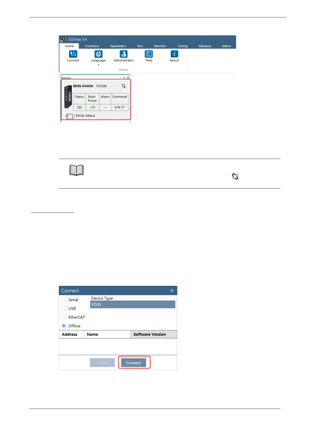 If you had started ESView V4, select Home > Connect in the Menu Bar.
