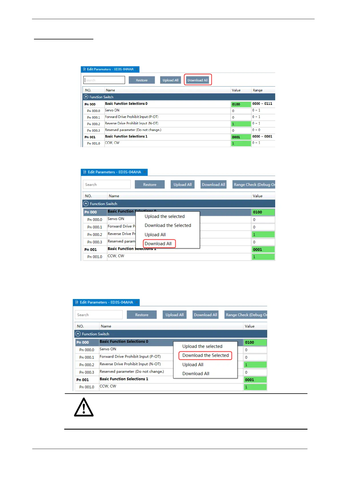 − Right-click the parameters list where cannot be edited, and select Download All in the pop-up