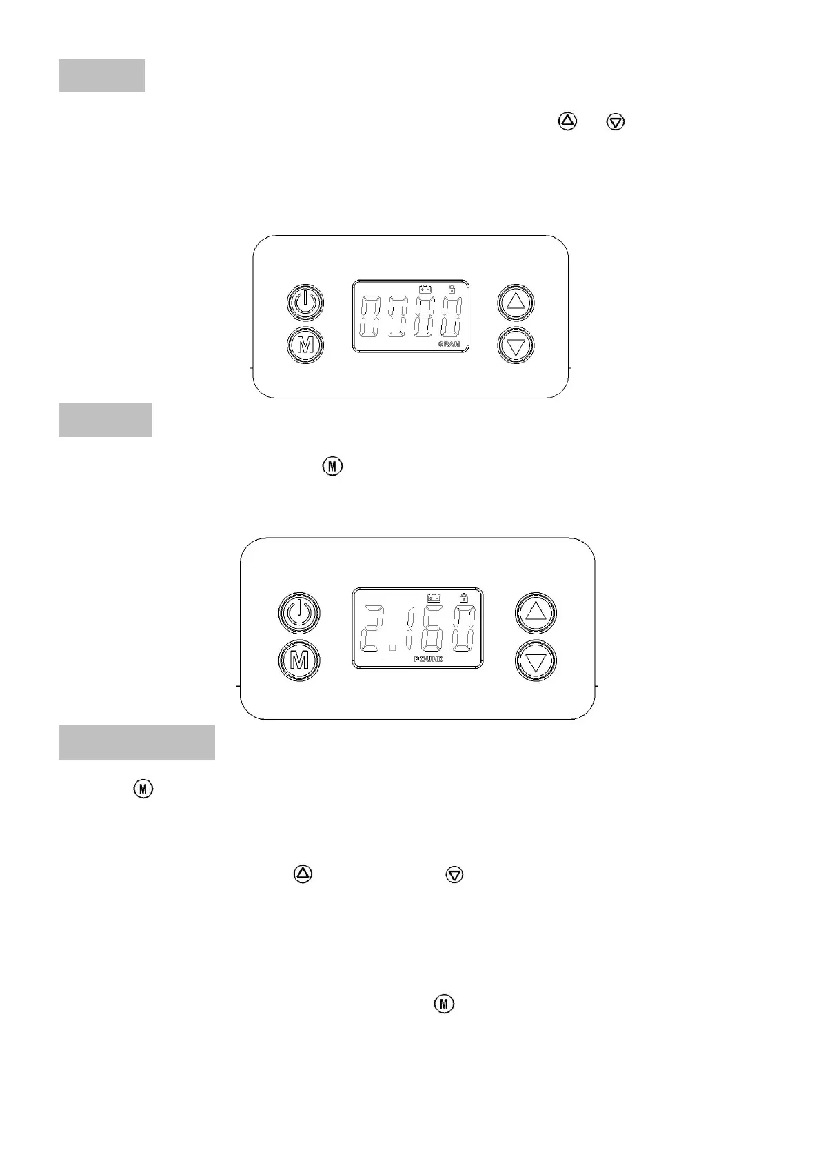 ■ In WOC mode, press the up button or the down button to increase or decrease weight by 10 grams each