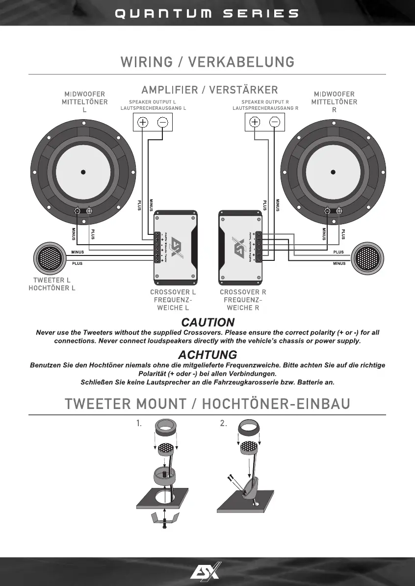 ESX Quantum Series - WIRING; VERKABELUNG; CAUTION; TWEETER MOUNT; HOCHTÖNER-EINBAU