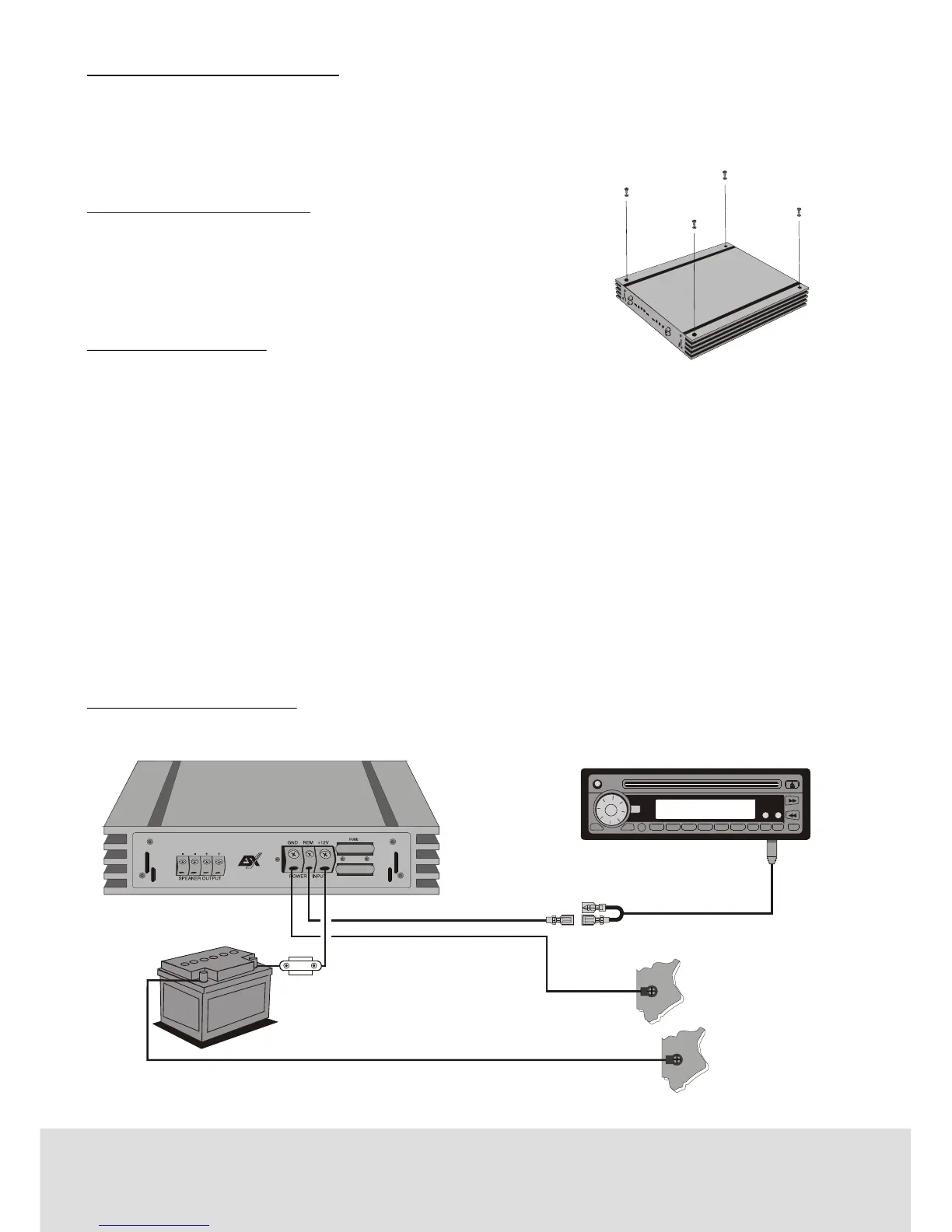 fuse in line with the + power supply wire. Please use a sufficient gauge for the installed amplifiers (16-25 mm²).This connection must