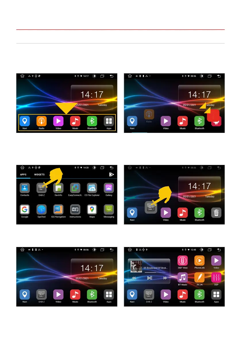 In each of the ve main menus there are six basic apps at the bottom, which you can freely dene. To