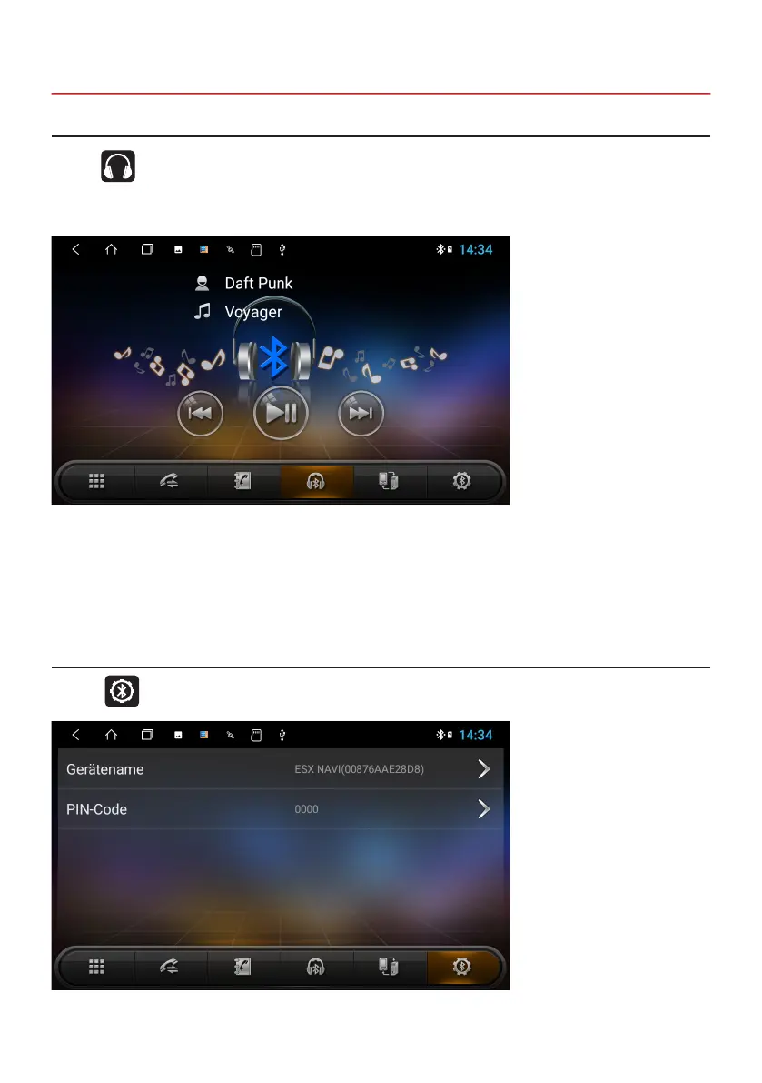 Use the play/pause and the skip buttons to play audio les from your mobile phone via the device.