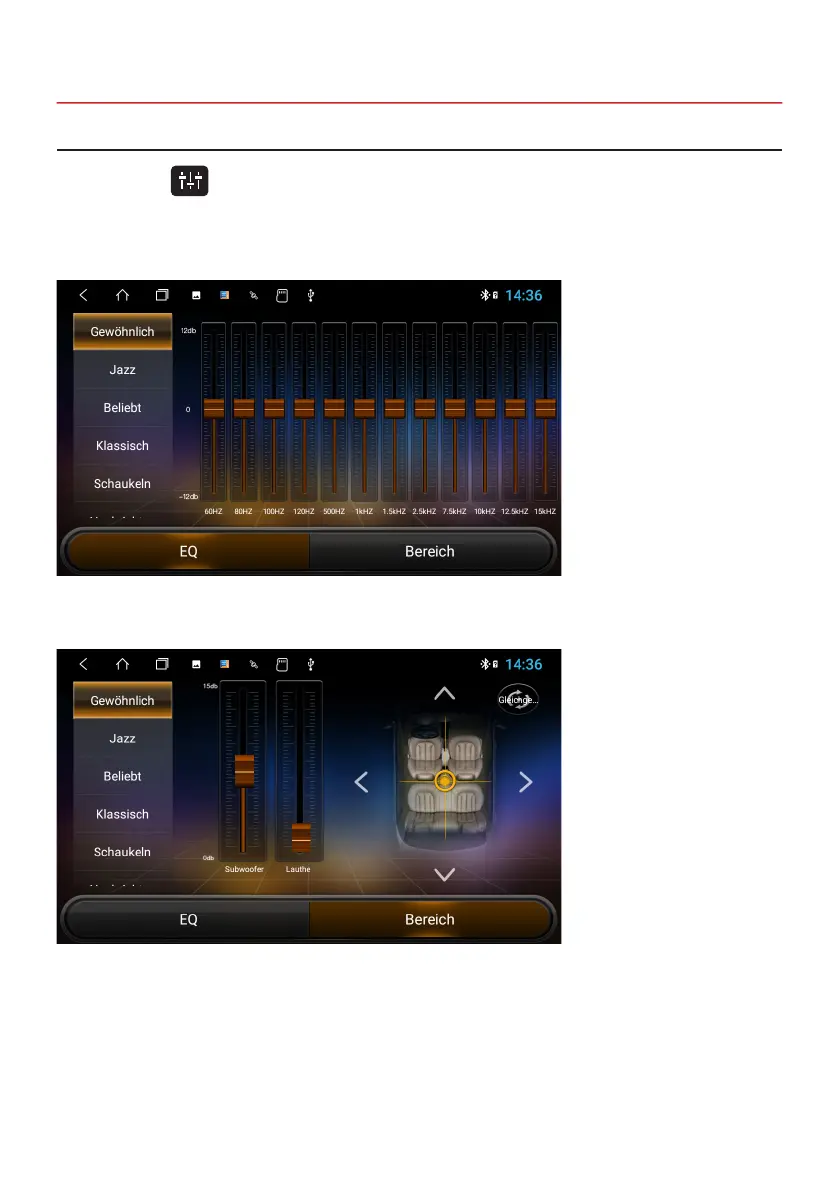 Click on EQ or on , in the main menu or in the audio or video playing menus. The equalizer menu is divided into