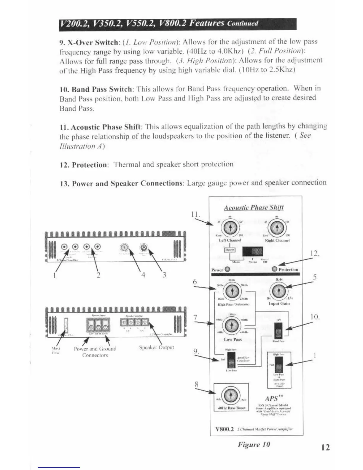 ESX Vision V200.2 - Advanced Control Features; Crossover and Band Pass Switches; Acoustic Phase Shift and Protection