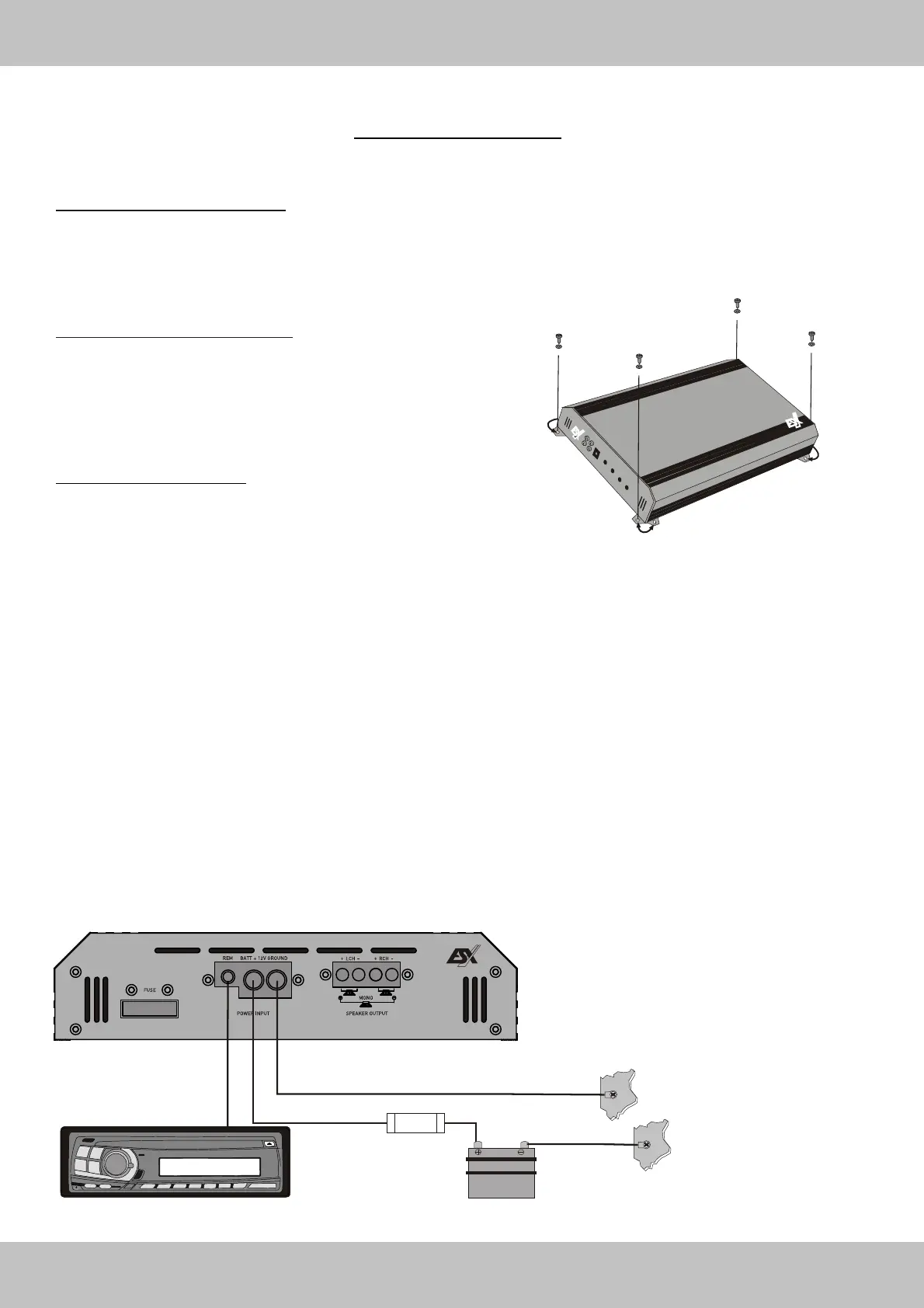 parts of the vehicle, since the vibrations can cause damages to the amplifier´s electrical components.