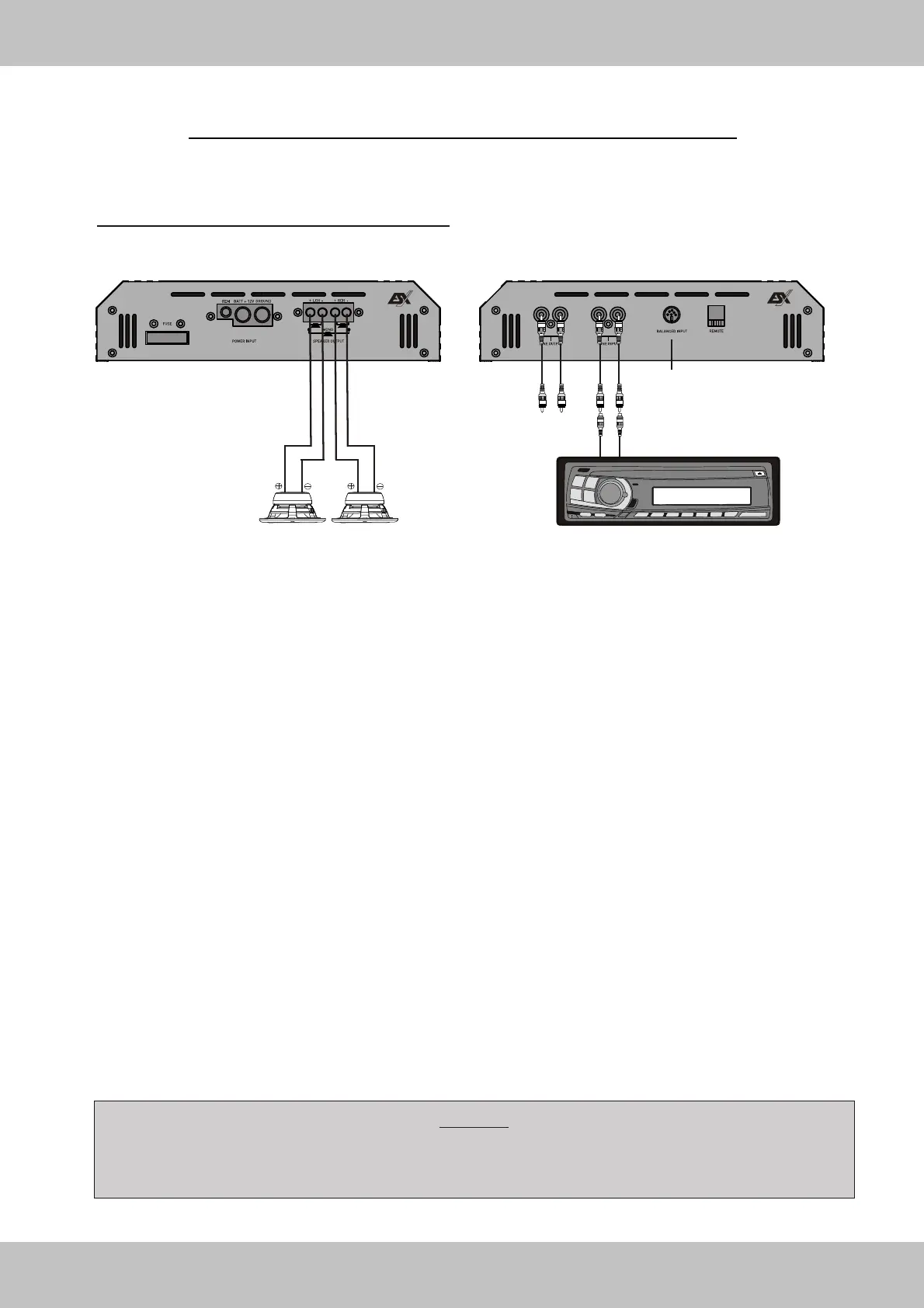 • Connect the head unit line outputs (FRONT or REAR L & R) with the RCA LINE INPUTs of the