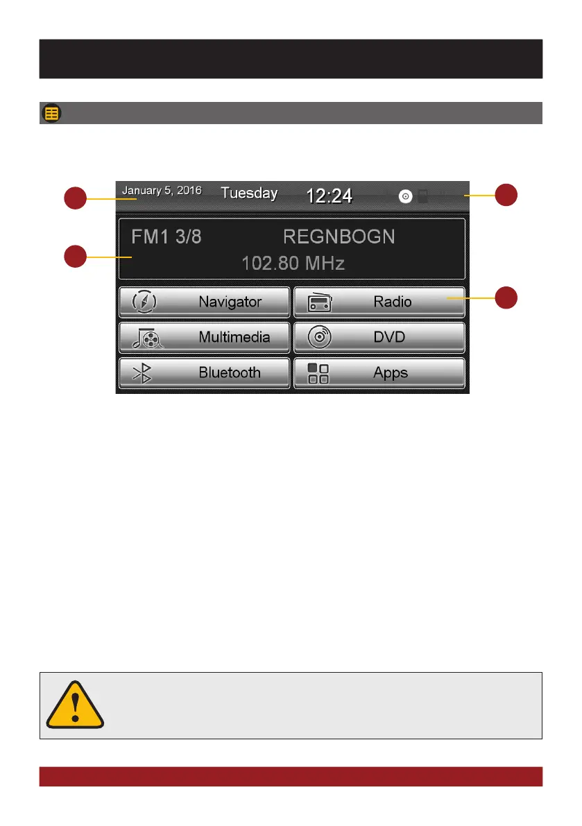 4. The main menu displays five to eight key panels, which start the selected application or lead to the