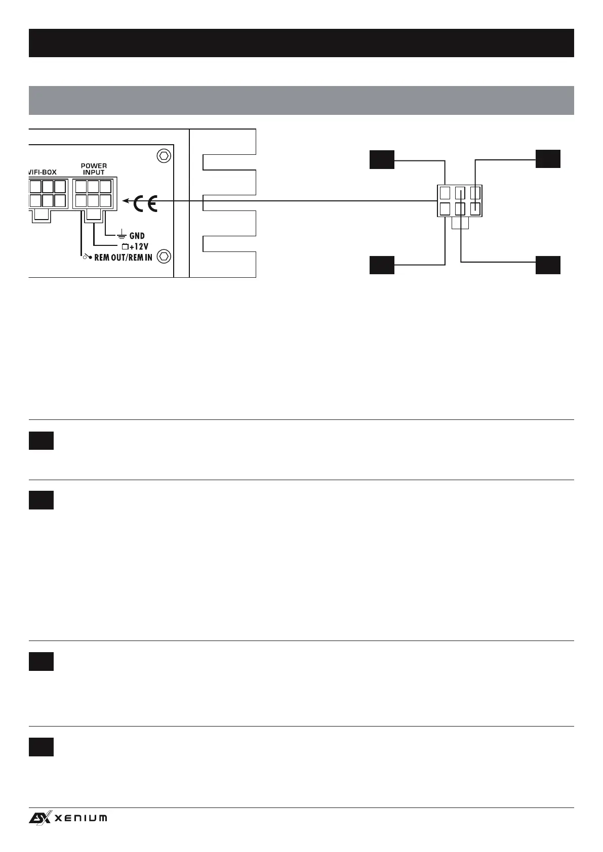 Connect the +12V-cable with the +12V pole of the vehicle’s battery. Use a suitable cable with a sufcient cross section (at least