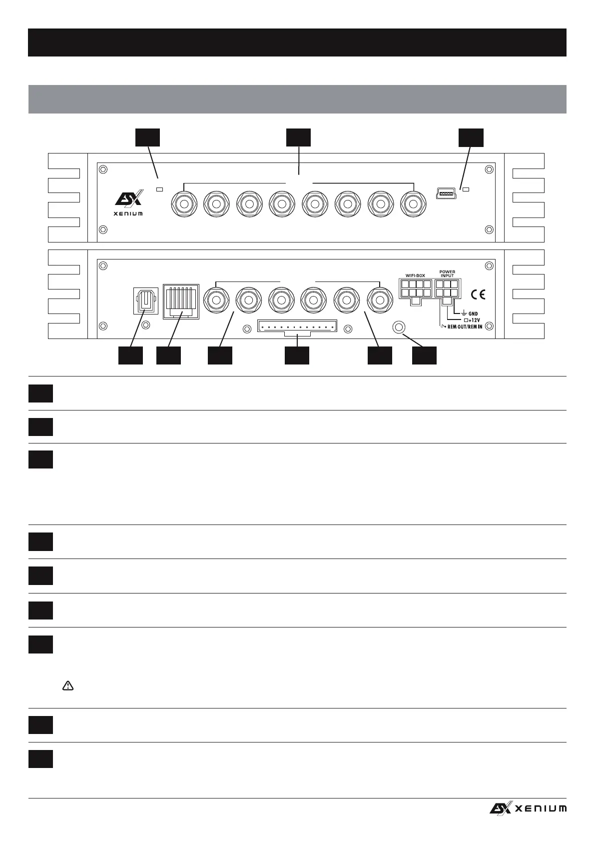 The eight LINE OUT RCA jacks provide audio signals for ampliers, which can be modied and congurated with the DSP soft-
