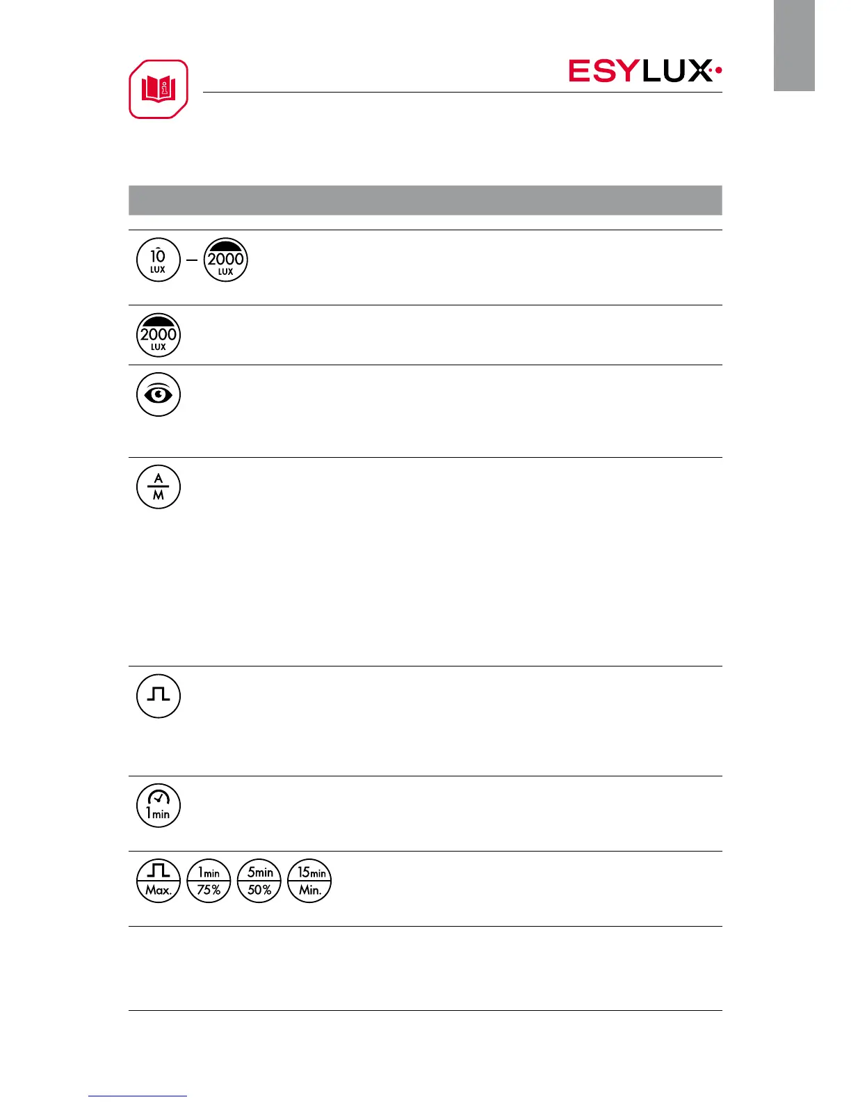 switches the lighting on for approx. 5 second and off for approx. 5 seconds.