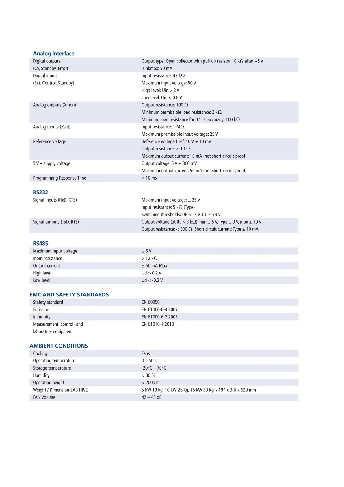 Et system LAB-HP/E Series - AI Interface; EMC and Safety Standards; Ambient Conditions