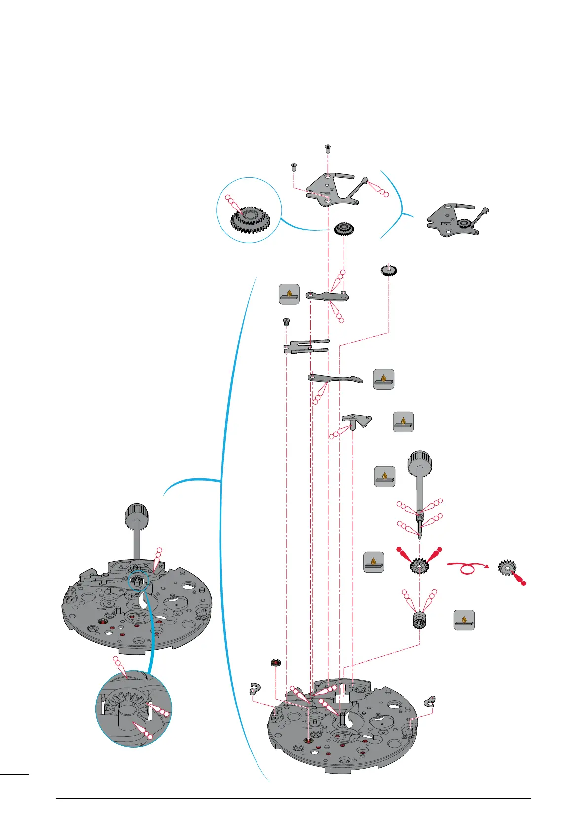Mécanisme de mise à l’heure - Zeigerwerkmechanismus - Handsetting mechanism