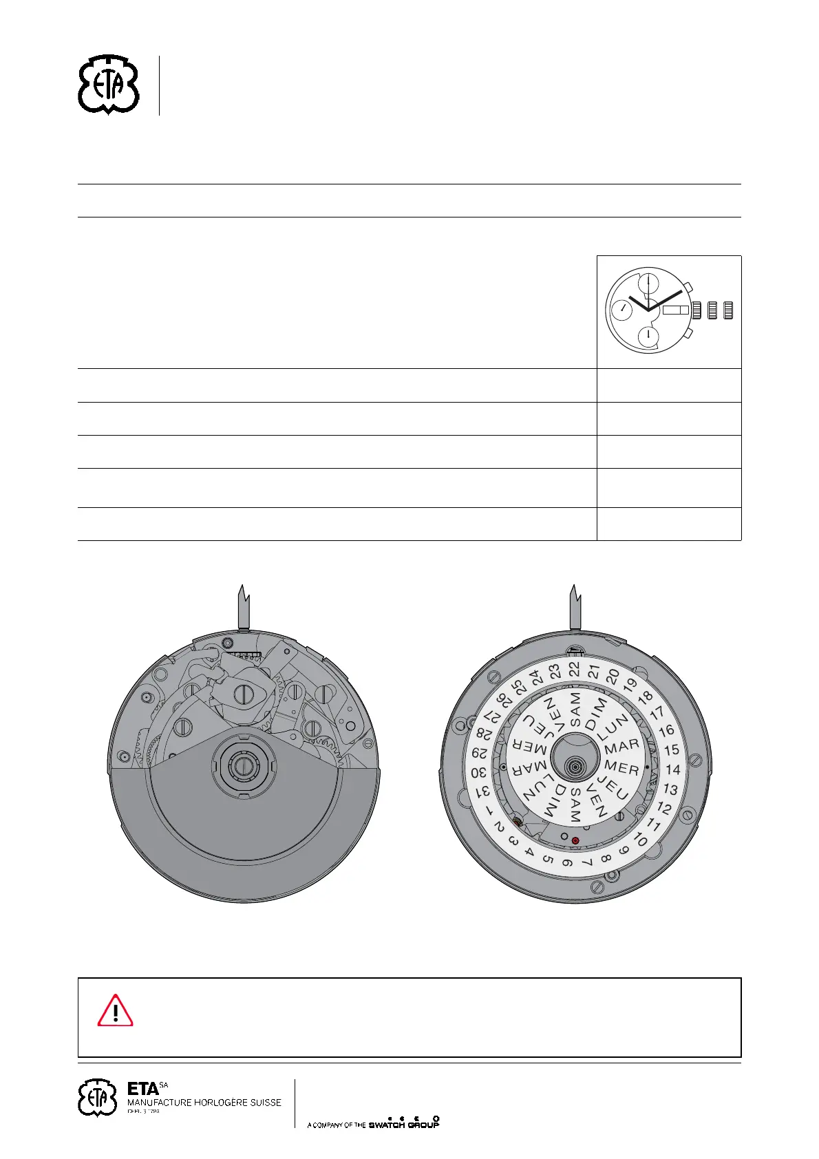 Phone +41 (0)32 655 71 11 | Fax +41 (0)32 655 71 74 | contact@eta.ch | www.eta.ch
