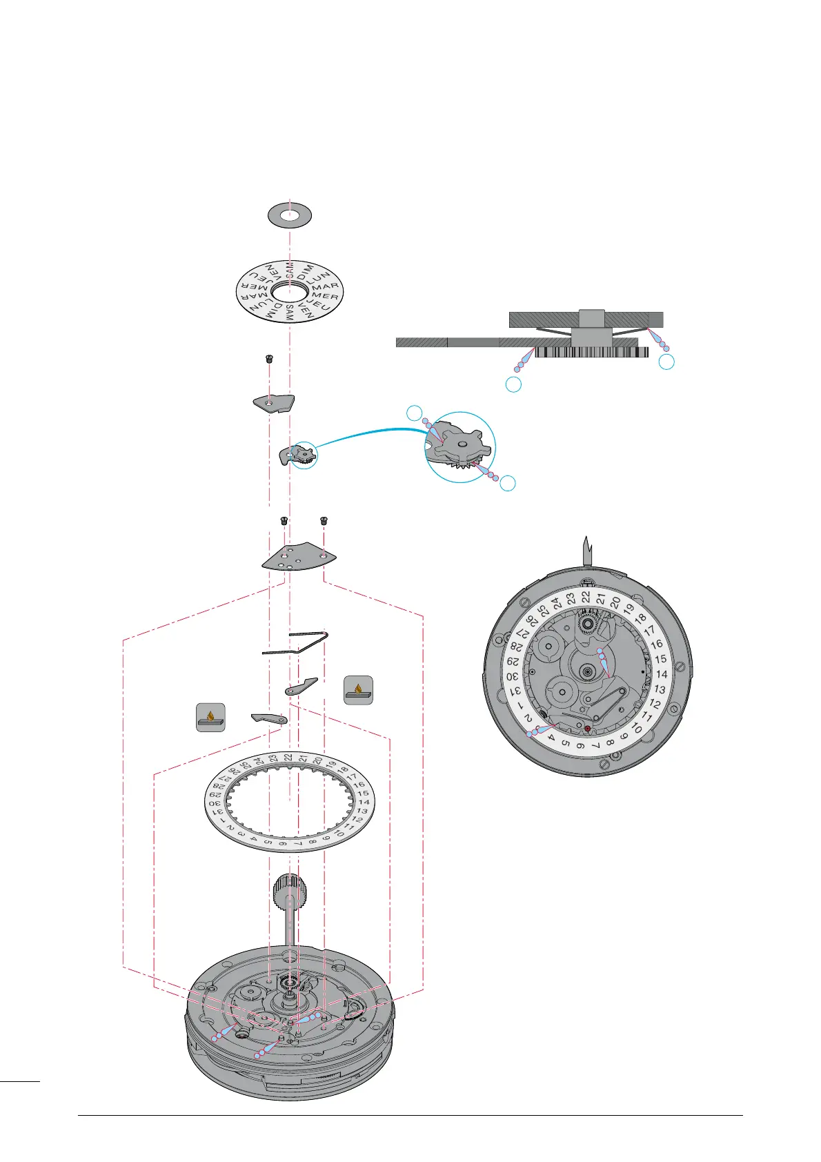Date and hour counter mechanisms - Mecanismo del calendario y de contador de horas -