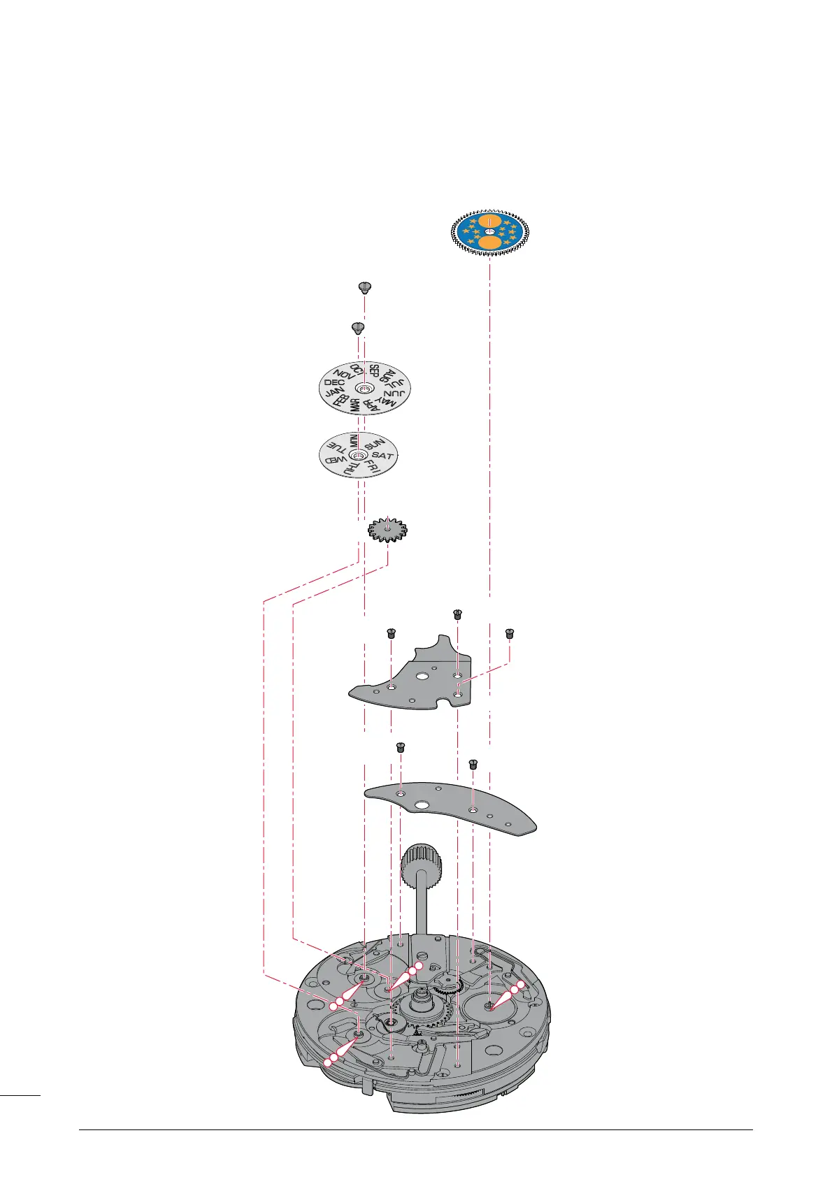 Mécanismes de calendrier, phase lunaire et compteur d’heures - Kalender, Mondphasen und Stundenzäh-
