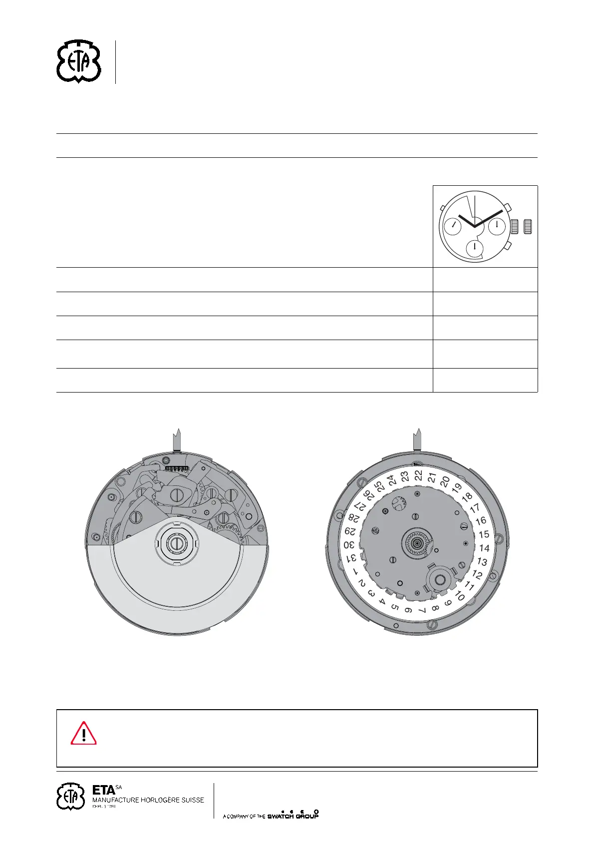 Phone +41 (0)32 655 71 11 | Fax +41 (0)32 655 71 74 | contact@eta.ch | www.eta.ch