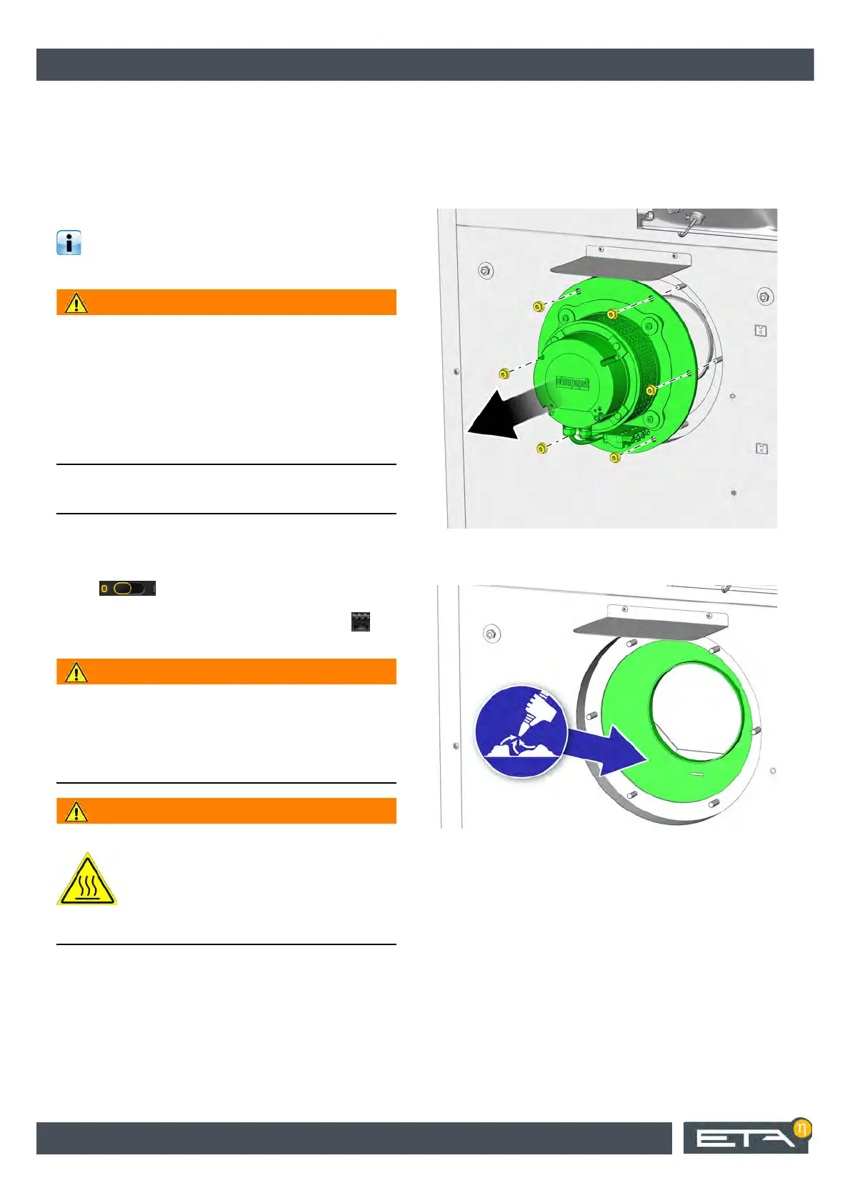 Unplug the draught fan's power supply. Loosen the