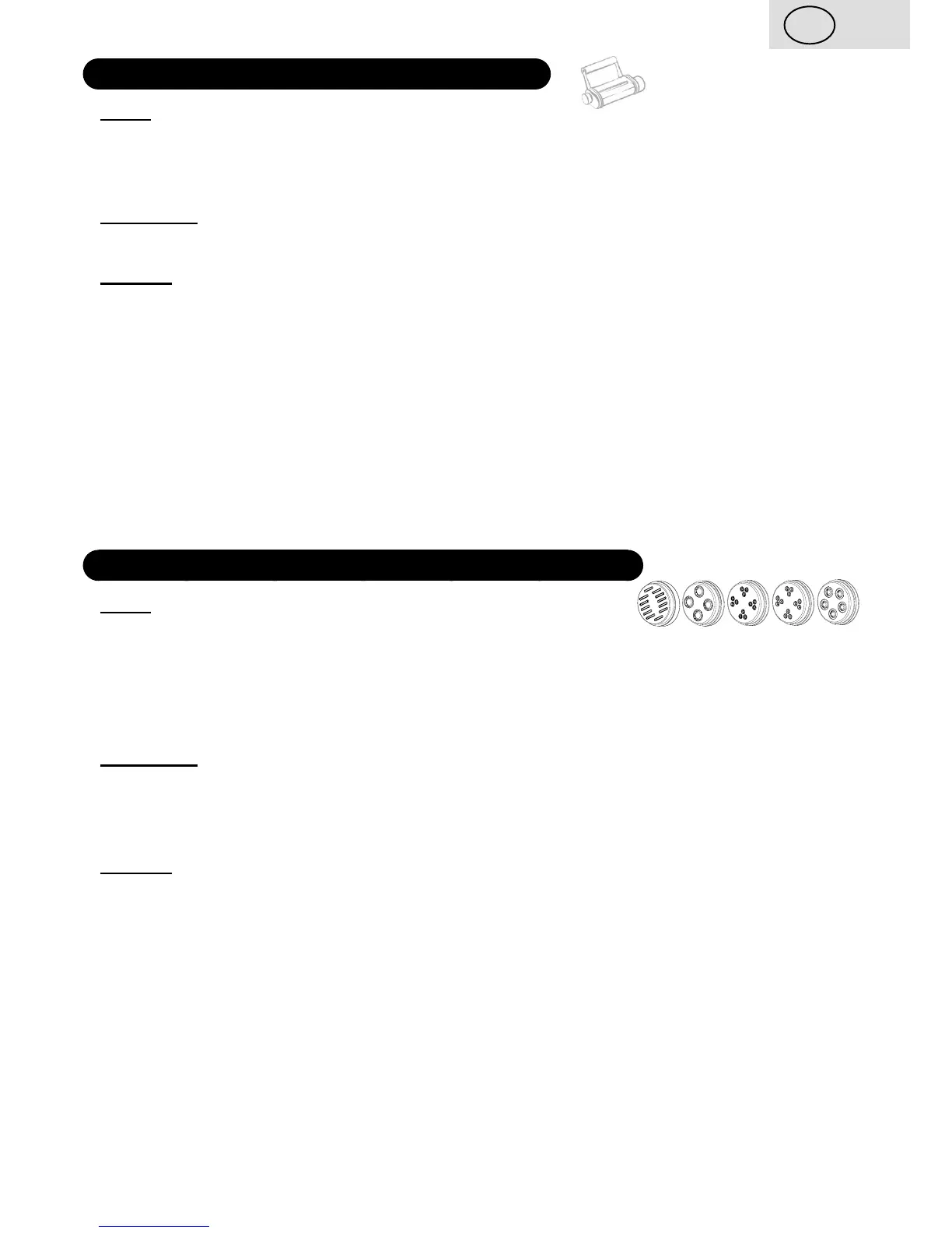 Nástavec G2 a G3 má rozdielne usporiadané nože a vytvára rozdielny druh cestovín. Pred