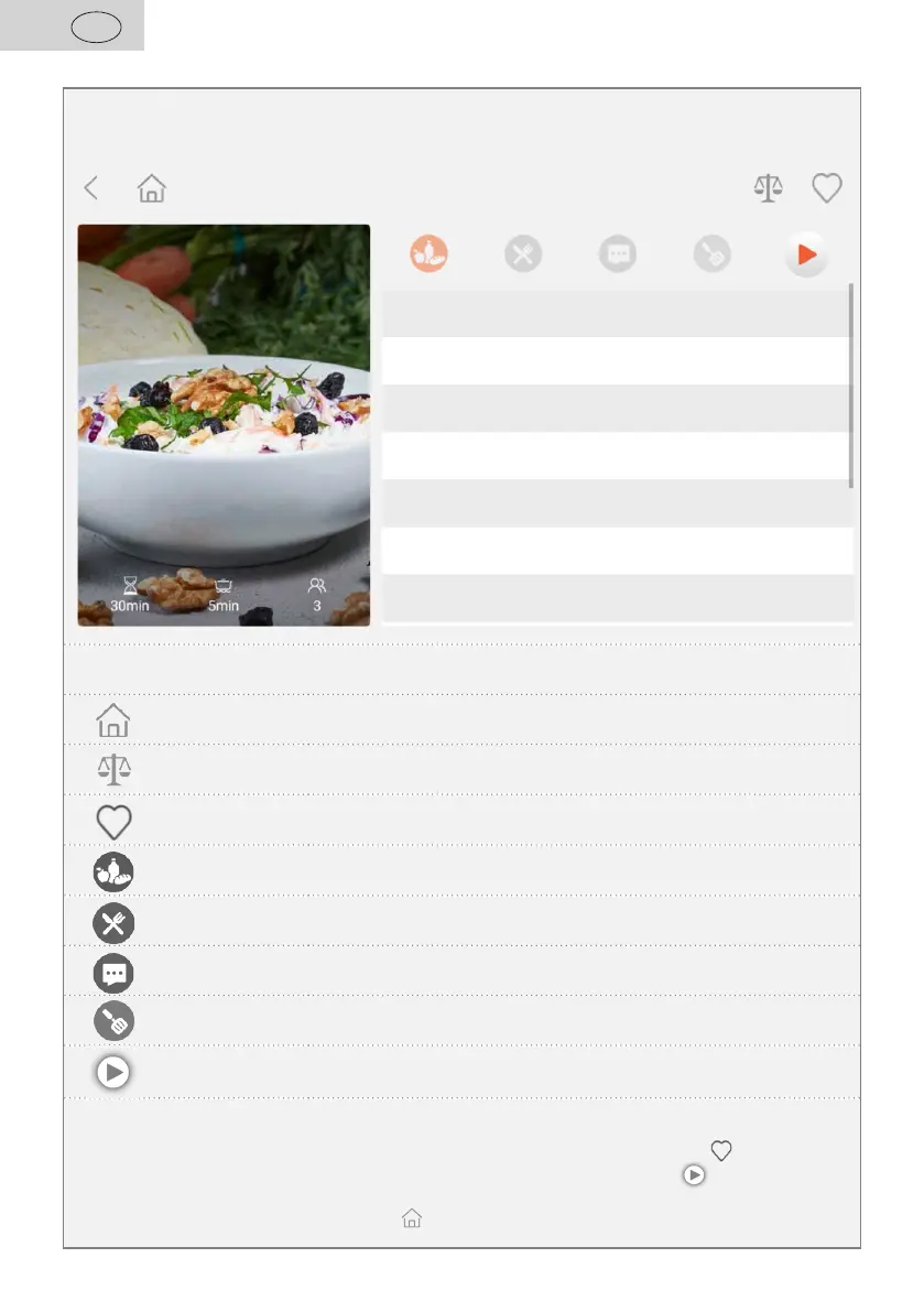 vaření, potřebné části příslušenství nebo tipy šéfkuchaře. Recept si pomocí ikony můžete přidat