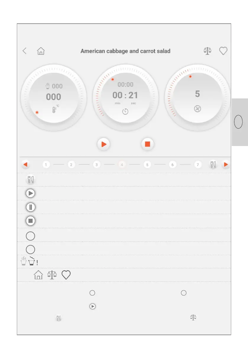 next step. In case that an option appears in a step, you may start or interrupt it by pushing it.